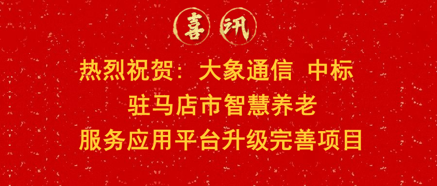 中標喜訊 | 熱烈祝賀大象通信中標駐馬店市智慧養(yǎng)老服務(wù)應(yīng)用平臺升級完善項目