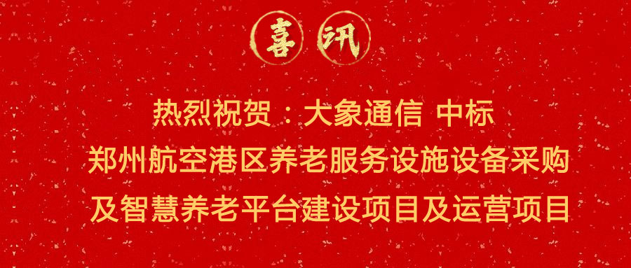 中標喜訊 | 熱烈祝賀:大象通信中標鄭州航空港區(qū)養(yǎng)老服務(wù)設(shè)施設(shè)備采購及智慧養(yǎng)老平臺建設(shè)項目及運營項目
