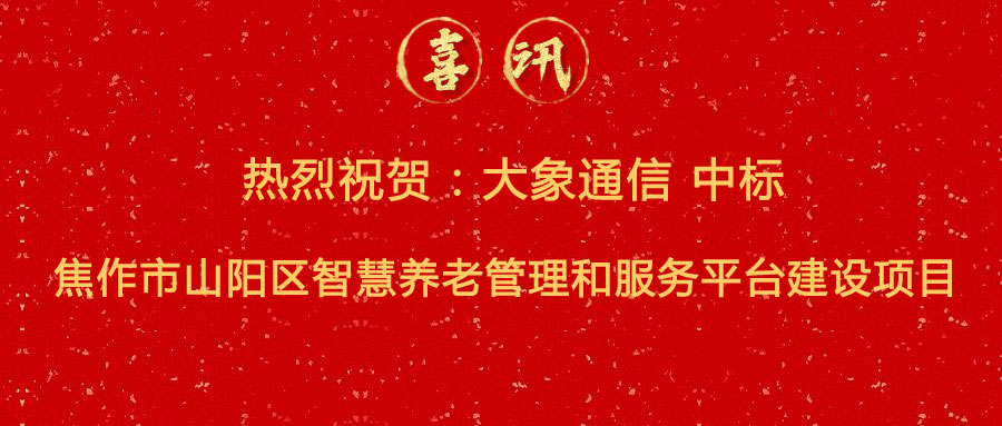 中標喜訊 | 熱烈祝賀:大象通信中標焦作市山陽區(qū)智慧養(yǎng)老管理和服務(wù)平臺建設(shè)項目